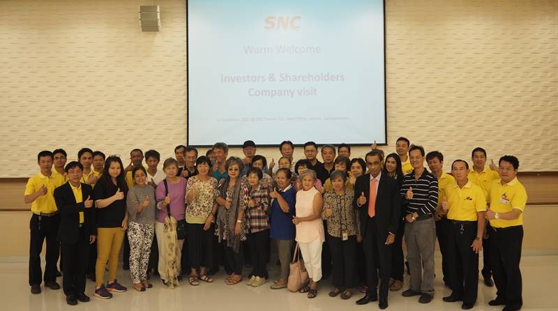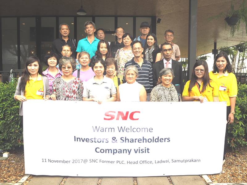 กิจกรรมเยี่ยมชมกิจการ กลุ่มบริษัท เอส เอ็น ซี ฟอร์เมอร์ จำกัด (มหาชน ) จังหวัด สมุทรปราการ ในวันที่ 11 พฤศจิกายน 2560 วันที่ 11 สิงหาคม 2560 เวลา 10.00 – 12.00 น. คณะผู้บริหาร บริษัท เอส เอ็น ซี ฟอร์เมอร์ จำกัด (มหาชน ) ให้การต้อนรับ ผู้ถือหุ้นและนักลงุทน ที่มาเยี่ยมชมโรงงาน จังหวัดสมุทรปราการ